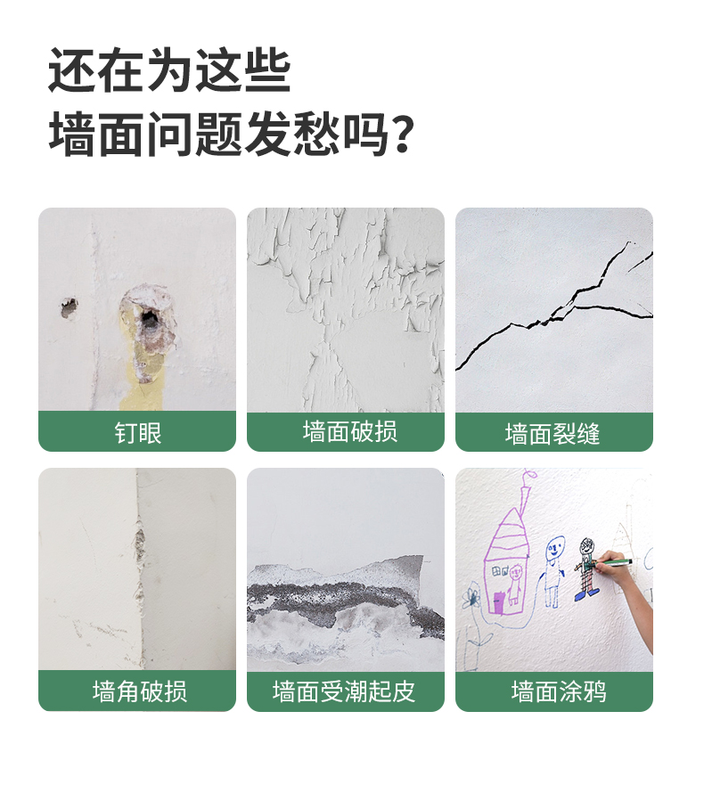 墙面裂缝、脱皮不求人,『保赐利墙面修补膏』,一抹修复,速干不掉粉,让家焕新颜!